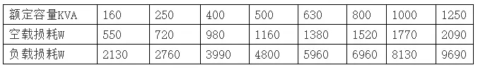 干式變壓器技術(shù)參數(shù)有:①頻率50Hz,②空載電琉,要求少于4%,③低壓耐壓強度:2KV/min無擊穿,④絕緣電阻低壓側(cè)不少于2MΩ,⑤繞組連接方式:/Y/yn0,與D/yn0 ,⑥線圈允許溫升100K,⑦散熱方式:自然風(fēng)冷或溫控風(fēng)冷,⑧噪聲系數(shù)小于30dB。各種容量干式變壓器(SCB型)損耗參數(shù)如表1所示。